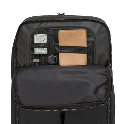 Cocoon's Vault™ series backpack with a secret RFID-blocking pocket and TWO easy-access pockets with built-in GRID-IT!® Organizers, sets a new standard for secure organization. Technology is an indispensable part of our lives. Wires, cables, cords, accessories, and, of course, devices need to be within an arm's reach at all times. Whether you're old-school or cutting edge, Cocoon's Vault™ series offers the perfect bag to keep your tech safe, gear organized, and data secure. Made with coated ballistic nylon, this stylish backpack provides separate compartments for your laptop, tablet, and papers, as well as a hidden pocket lined with RFID-blocking material to keep your ID, passport, and wallet completely secure. As always, the GRID-IT!® Organizer keeps your bag clutter-free, saving you valuable time and space. Wave goodbye to tangled cords and endless treasure hunts at the bottom of your bag. Whatever you need, whenever you need it, Cocoon keeps it neat and organized. A place for everything, and everything in its place.